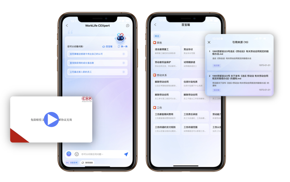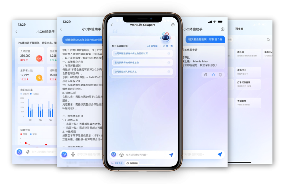 - HR端:AI赋能全流程自动化,覆盖招聘、合同、档案,轻松应对政策与事务,效能倍增