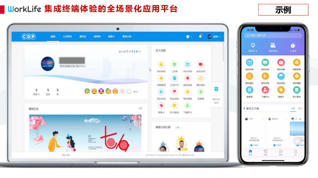 依托 WorkLife 员工手机 APP,CDP 为森马集团打造覆盖员工入职到离职的全生命周期数字化体验平台,让员工感受企业人文关怀,强化团队凝聚力。